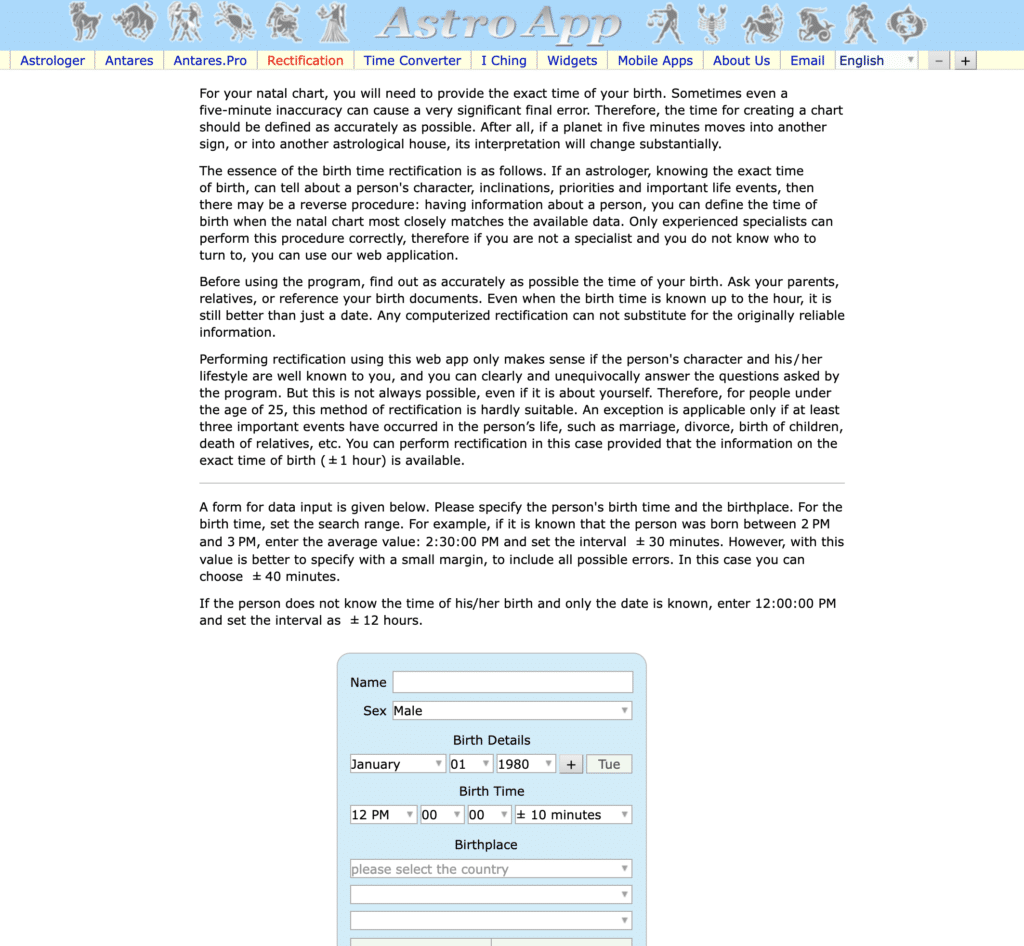 You will need to open to a web page that is a Rectification Calculator at Astro App