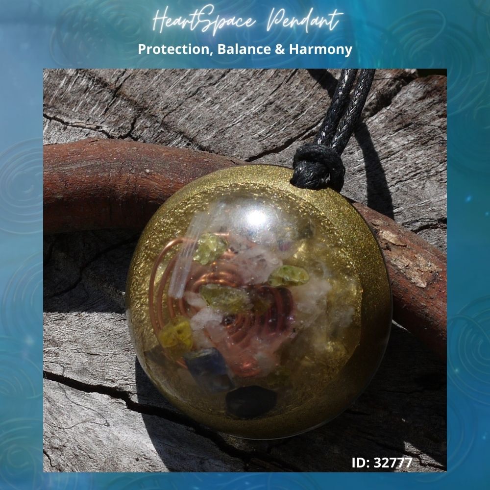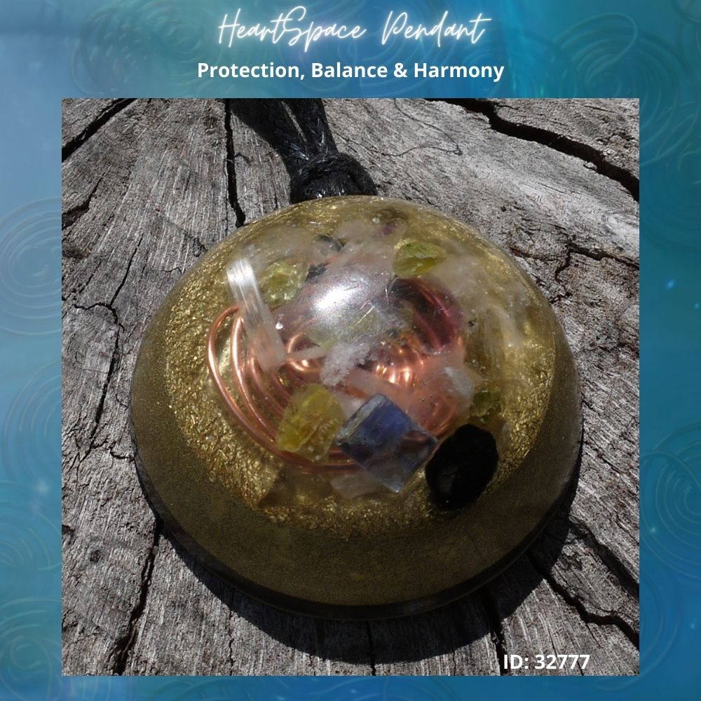 Introducing our Orgonite Heartspace Pendant, a unique and personalized accessory designed to fortify, strengthen, and smooth your aura. Each pendant in our collection carries its own distinct personality and vibe, making it as unique as you are. Crafted with a specialized Orgonite matrix developed by Amanda, this pendant is a fusion of art and energy work. The heartspace Amanda coil, encased in clear resin, contains a powerful blend of crystals, including Kyanite, Peridot, Amethyst, Citrine, Selenite, Rose Quartz, Clear Quartz, Smokey Quartz, Garnet, Labradorite, and Jet. These carefully selected crystals work together harmoniously to enhance your energy field and promote a sense of balance and well-being.