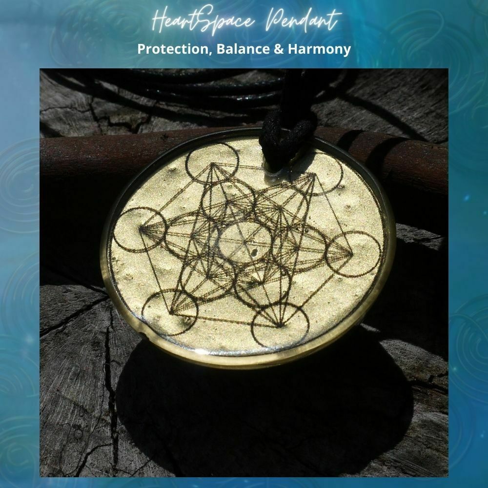 Our Orgonite Heartspace Pendant features Amanda’s proprietary Auric orgonite matrix and is adorned with Metatron’s Cube in the base, a sacred geometric symbol known for its protective and balancing properties. The pendant is not just a piece of jewelry; it is a wearable energy tool that promotes positivity and vitality in your life. The adjustable cotton cord ensures a comfortable fit, and its lightweight design allows you to wear it with ease. With a weight of 40 grams and dimensions of 5cm in width and 2cm in height, this pendant is a powerful and stylish addition to your daily wear. Embrace the unique energy of our Orgonite Heartspace Pendant and let its transformative properties elevate your aura, bringing you a sense of inner strength and calmness.